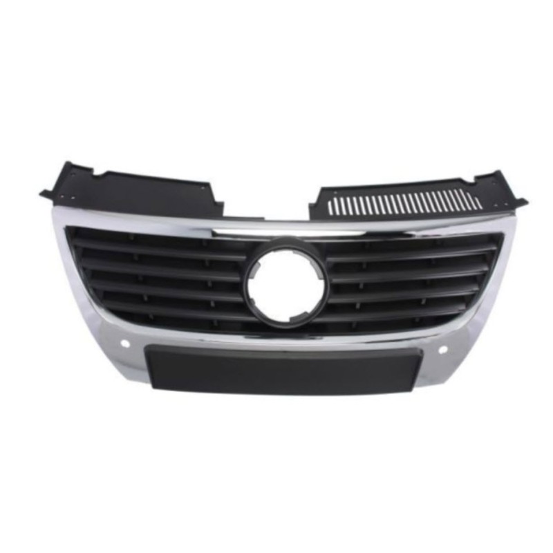 MODELO 05-10 REJILLA FRONTAL NEGRA CON FILO CROMADO ALOJAMIENTO DE ANAGRAMA GRANDE 15 CM CON SENSORES DE APARCAMIENTO. Recambio de rejilla delantera para volkswagen passat berlina (3c2) referencia OEM IAM 3C0853651AHFKZ 107234105 VG0542021