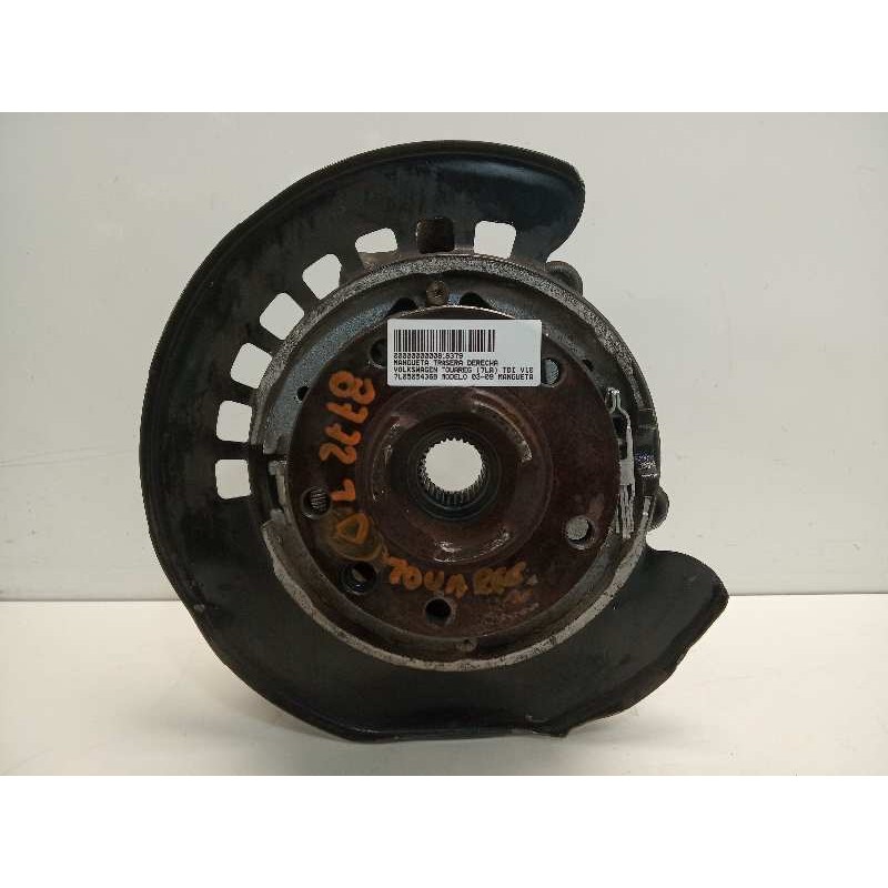 MODELO 03-09 MANGUETA TRASERA DERECHA CON BUJE DE 5 TORNILLOS, CON 30 ESTRIAS, FRENO DE MANO DE ZAPATAS Y ABS. Recambio de mangueta trasera derecha para volkswagen touareg (7la) tdi v10 referencia OEM IAM 7L0505436B