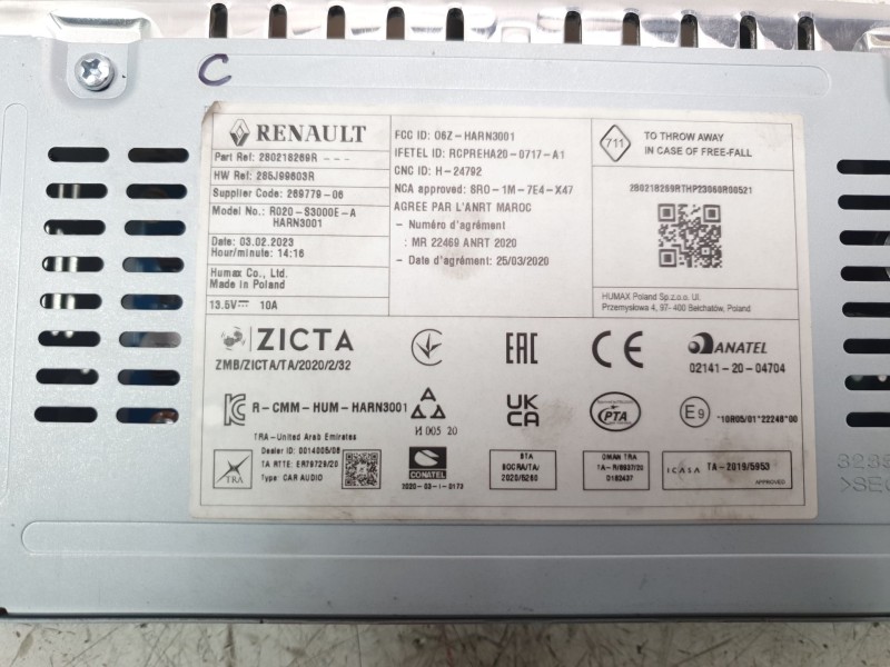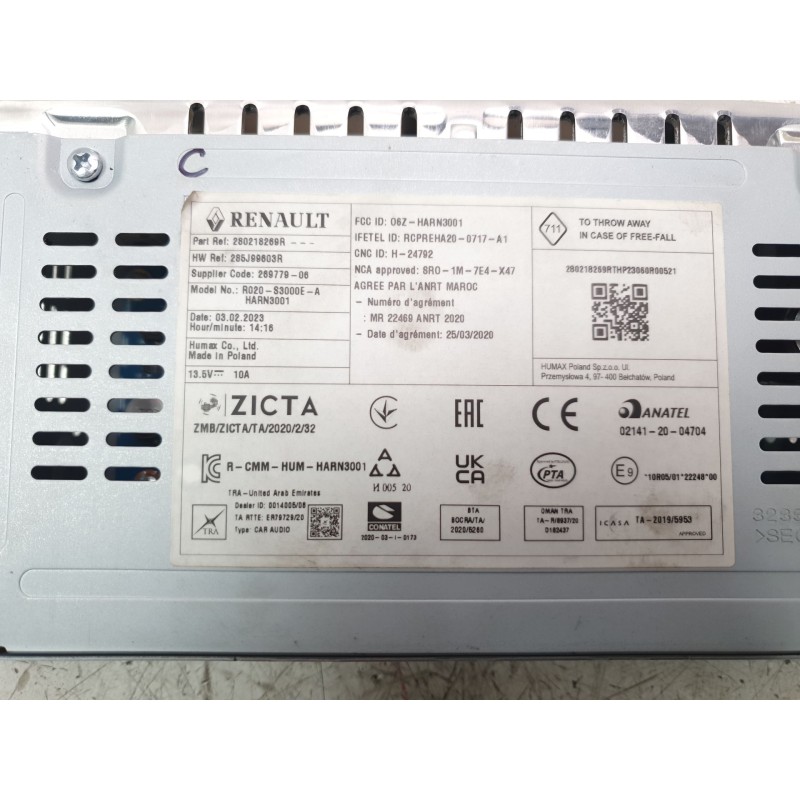 MODULO SISTEMA AUDIO / RADIO CD CON 5 CONECTORES. Recambio de sistema audio / radio cd para dacia sandero iii expression referencia OEM IAM 280218269R